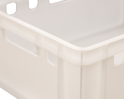 Praktische Griffe an vier Seiten des Behälters erleichtern das Tragen. Glatte Innenwände ermöglichen eine gründliche und schnelle Reinigung des Behälters.