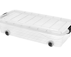 Die Bed Roller ist aus sehr hochwertigem Kunststoff hergestellt. Die zusätzlichen gerippten Verstärkungen am Boden des Behälters sorgen für eine außergewöhnliche Haltbarkeit. Der Deckel ist mit entsprechenden Aussparungen ausgestattet, die ein platzsparendes Stapeln der Behälter ermöglichen. Die Rollerbox sorgt für Ordnung der gelagerten Gegenstände in einem Zimmer, einer Küche oder einem Hauswirtschaftsraum.