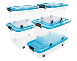 Die montierten Räder machen es einfach, den Container an jeden Ort zu bewegen. Die Behälter eignen sich perfekt für ein Kinderzimmer als Organizer für Blöcke und für andere Spielzeuge.