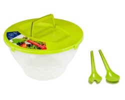 Das Salat-Set besteht aus einer 5-Liter-Salatschüssel, einem Deckel mit Griff und einem Besteckset.