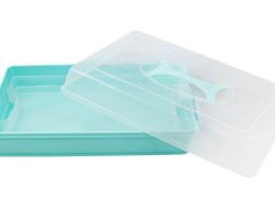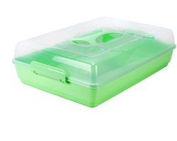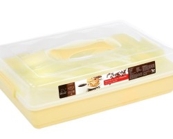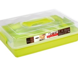 ist funktional und gutaussehend und kann nicht nur zur Aufbewahrung von Kuchen, sondern auch von anderen Lebensmitteln verwendet werden. Der Kuchenbehälter nimmt ein sehr großes Kuchenblech auf. Er hat sehr praktischen Einsatz- die abnehmbare Servierplatte , die sich innen befindet und kann direkt auf dem Tisch verwendet werden. Diese Servierplatte ist farblich transparent. Die Aufbewahrung von Lebensmitteln in diesem Behälter gewährleistet ihre Haltbarkeit und Frische.