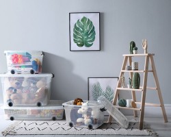 Die montierten Räder machen es einfach, den Container an jeden Ort zu bewegen. Die Behälter eignen sich perfekt für ein Kinderzimmer als Organizer für Blöcke und für andere Spielzeuge.
