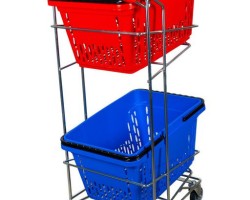 Wagen mit zwei Fächern für Einkaufskörbe.